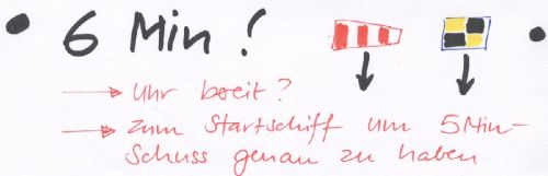 | Phasen: Vorstart | 6 Min. | 5 Min. | 4 Min. | 1 Min. | Start |