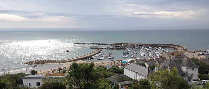 Lyme Regis quetscht sich an die fosilienhaltige Steilküste in Devon im Süden der Insel. Eine mächtige Hafenmauer mit schmaler Einfahrt schützt den kleinen Hafen vor Sturmfluten aus Westen. Bei Ebbe fallen die Boote grösstenteils trocken. Auslaufen war für uns dann mit Fussmarsch verbunden. Im eigentlichen Hafengelände beim Club hatten nur wenig Fireballs Platz. Die Nicht-GBRs hatten Vorzug, die Briten selber mussten auf den Sandplatz ausserhalb. Der Club hatte alles, was es braucht, ein grosses Zelt war gestellt, wo das ganze Drumherum stattfand. Die SUIs hatten sich Unterkunft besorgt im sogenannten Cobb, ein paar Schritte von den Booten weg. Häuser weiter weg waren nur über die steile Zufahrtsstrasse zu erreichen, für Velos nicht sehr geeignet. Restaurants und Läden waren genügend gut ohne Bergwanderung zu erreichen. Von dem her ein gutes Nest...