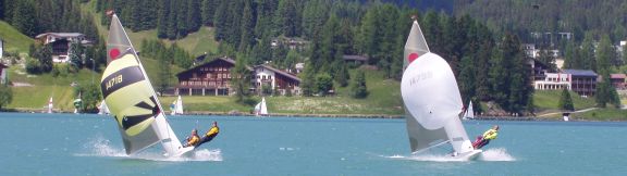 Kleiner See, starker Wind, Bojenmanöver dicht unter Land: Endlich mal wieder Adrenalin pur. Moser / Moser konnten die Böen und Dreher am Besten nutzen und kamen bei allen vier Läufen zuerst ins Ziel, gefolgt von Venhoda / Zaugg und Hofstetter Zaugg. Die Bedingungen verzeihten nichts, fast alle stiegen für kürzer oder länger aufs Schwert, manche 'gönnten' sich auch ein kühles Bad. Für die Zuschauer gab's jedenfalls einiges zu sehen ...