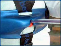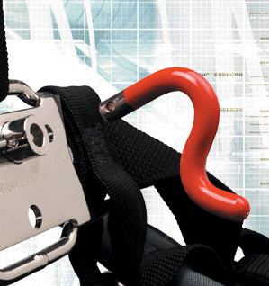 Der Haken wird mit einer angekletteten Reissleine vom Bügel getrennt und geht dabei verloren. Nachrüstung bei jedem Trapezgurt möglich.
