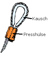 Die Kausch darf nicht zu eng an der Hülse liegen: beim Pressen wird die Hülse länger! Durch die Ausdehnung drückt sie sonst gegen die Kausch und zieht das kurze Ende in die Hülse hinein, was die Festigkeit stark beeinträchtigen würde.