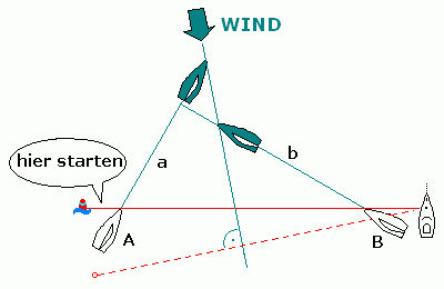 Die Strecke a ist länger als b. B kreuzt deutlich vor A.